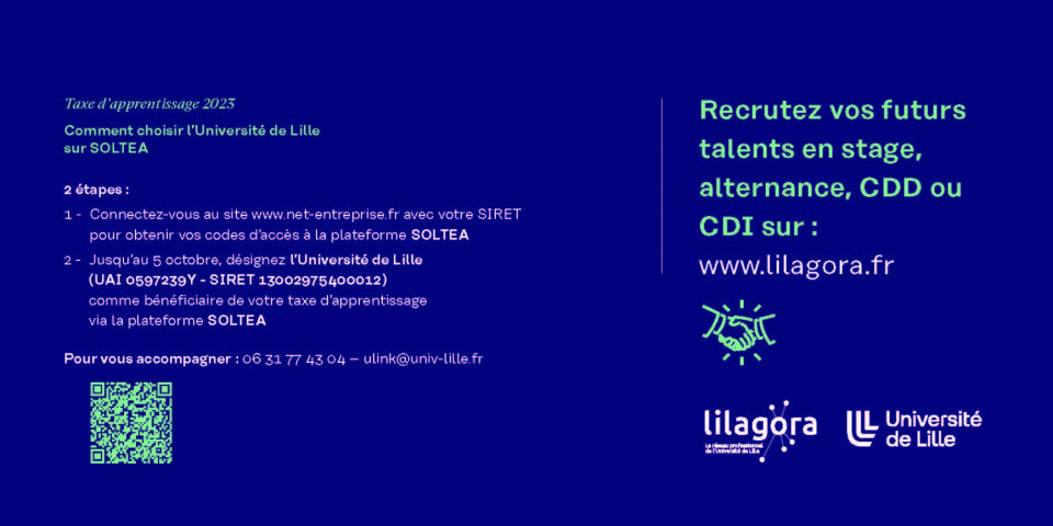 Pour tout renseignement complémentaire : ulink@univ-lille.fr / 06 31 77 43 04