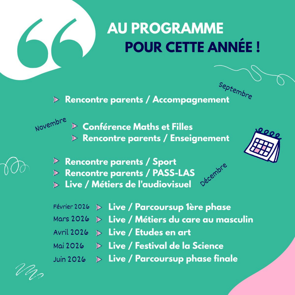 Bref, une année bien rythmée pour vous accompagner dans vos choix d’orientation, déconstruire les idées reçues et répondre à vos questions en direct !