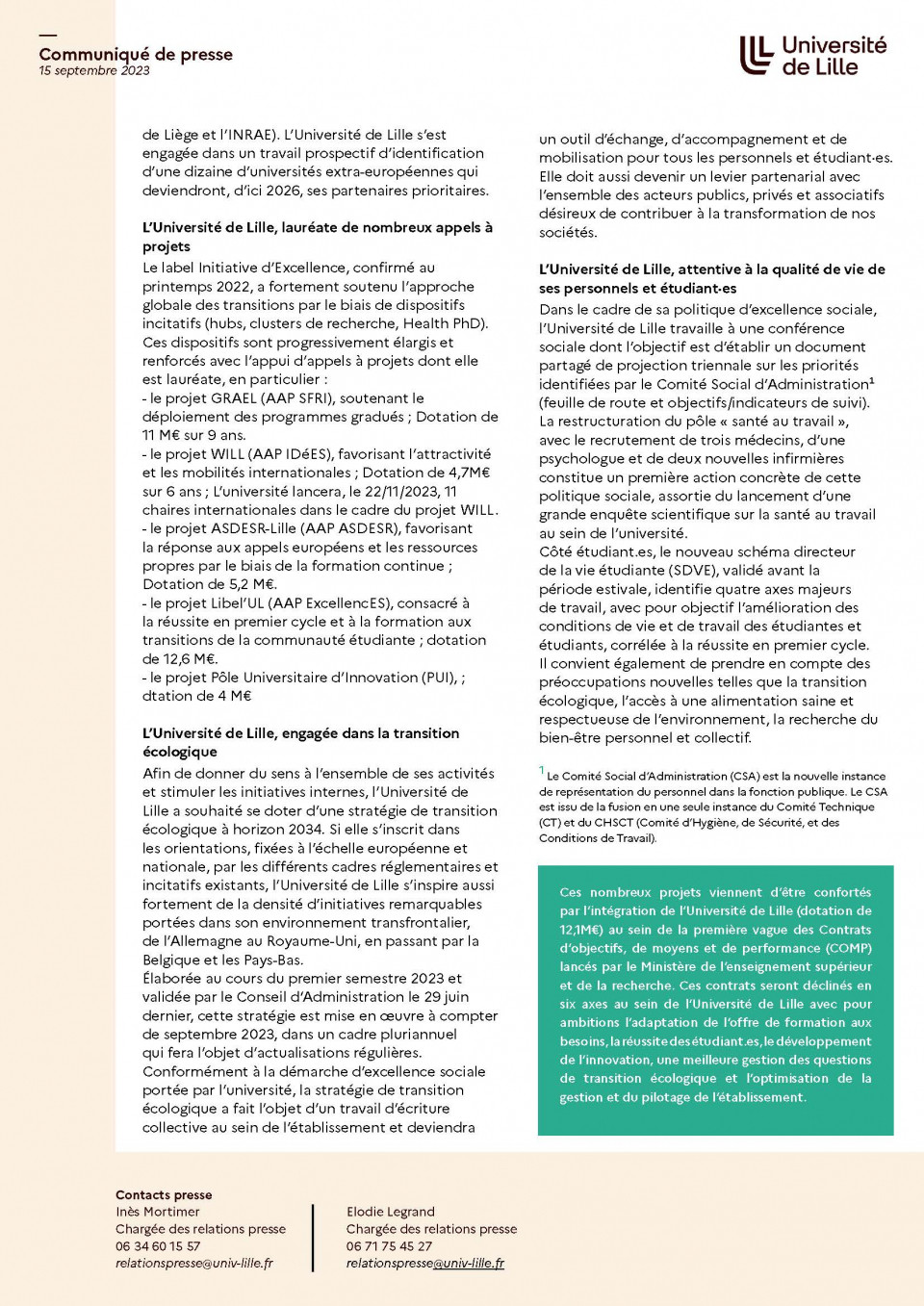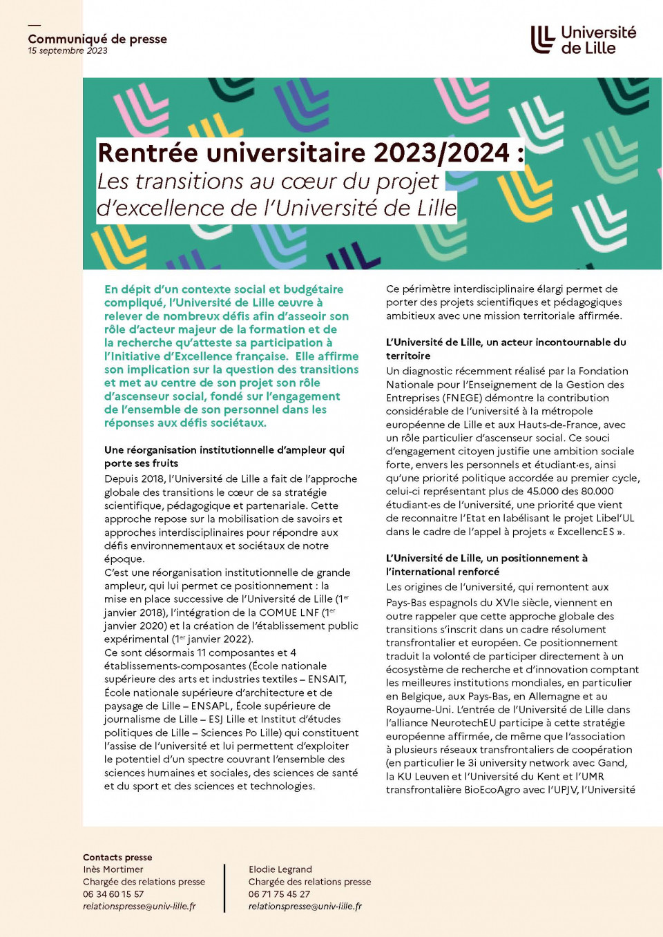 La conférence de presse de rentrée s'est tenue ce 15 septembre 2023L'occasion pour Régis Bordet et son équipe de présenter son projet et les nouveautés pour l'année universitaire 2023/2024.