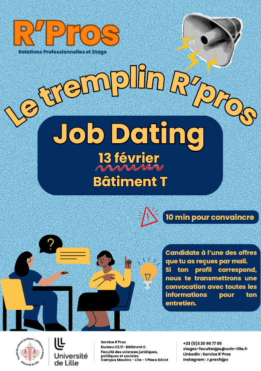 Stages, alternances, emplois : candidatez pour participer au Job Dating du service R'pros !