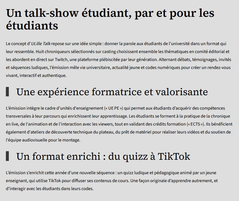 Le talk show 100 % étudiant de l’Université de Lille revient en direct sur Twitch avec une nouvelle équipe de chroniqueurs et d’invités, pour aborder la vie étudiante, ses défis et ses réussites.