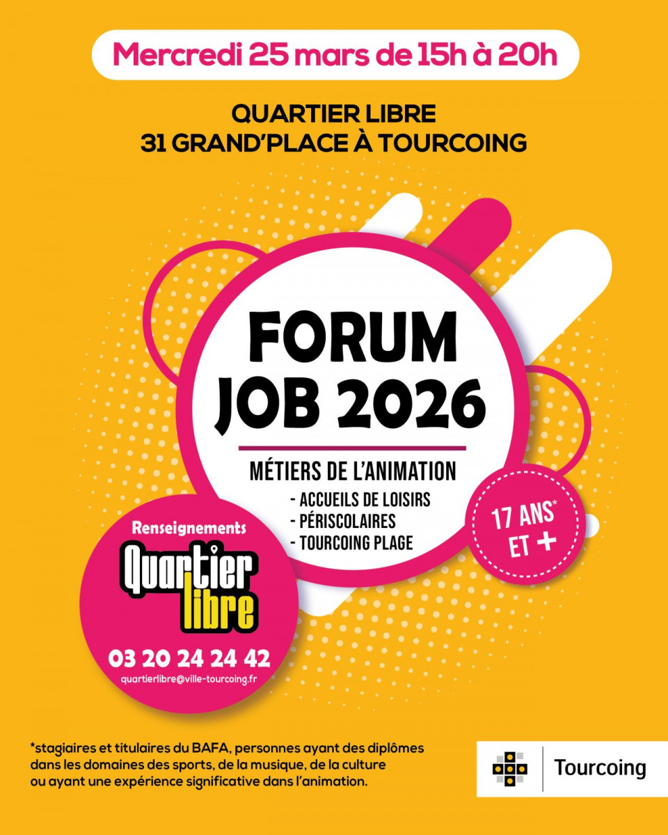Organisé à Quartier Libre, le Forum Job 2026 est un temps de recrutement ouvert aux jeunes de 16 ans et plus souhaitant s’engager dans les métiers de l’animation.